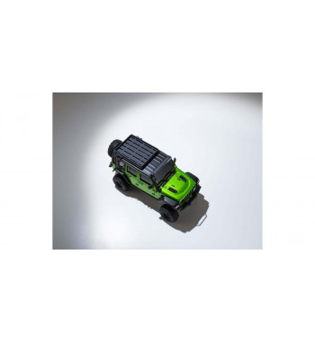 In the signature Jeep® Wrangler lineup, the Rubicon boasts the strongest off-road performance. With black over-fenders, front grille with dark grey accent, and the distinctive Jeep® round headlights, the formidable styling of the black hard top is immaculately reproduced in a model that rests on the palm of your hand.