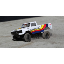 Original truck body is designed in the image of a 1970’s trophy truck. Includes grill that allows headlights to be changed to square type for a different appearance.
