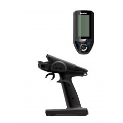 The lap timer can record 100 lap times and total time. The timer can also be started automatically by trigger operation. The race time and audible alarm can be set. Re-/fueling time are indicated by an audible alarm. An up timer is also provided.