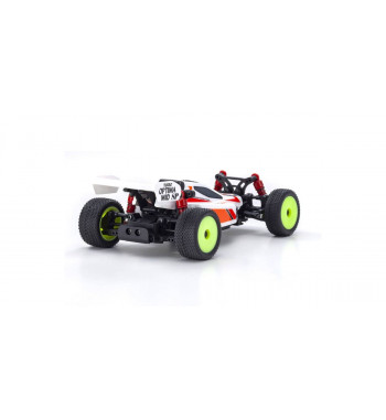 Simply add eight AAA-size alkaline batteries to this Readyset and the MINI-Z Buggy brings the fun of R/C car action. The advanced compact design includes 4WD drive train with slipper clutch to protect the gear system, and 4-wheel independent double wishbone suspension with oil-filled shocks to deliver true racing buggy performance. Most critical components are protected within the high-rigidity dustproof chassis shell. 7-stage geared steering servo provides plenty of torque for precision steering response and combines with the control program to realize the MINI-Z’s signature linear handling and light feel. The circuit board also features manual left/right volume adjustment for the optional gyro unit (sold separately) that stabilizes straight line running and improves cornering control. The fully pre-assembled Readyset package makes it simple and enjoyable for anyone to experience advanced R/C buggy performance, whether it’s your first car or as fun-driving second car.