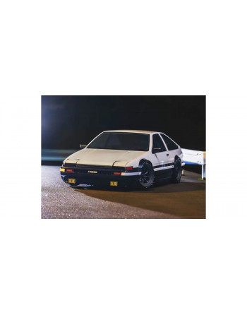 Toyota’s AE86 Sprinter Trueno is still popular today, nearly forty years after its launch almost 40 years ago in 1983. Kyosho has immaculately reproduced this ultra-scale body with molded plastic front and rear bumpers and also the AE86’s signature retractable headlights that can be (manually) open and closed.