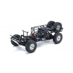 Embodying the defining mechanics of a real production model trophy truck, the scale 2WD Outlaw Rampage is about 80% pre-assembled in an ARR kit, including the optional upgrade components that mark this machine as a “PRO” version. While power and steering control is more challenging than a 4WD model, the superior running stability and overall functionality of this rear wheel 2WD is realized from the roll cage, long stroke aluminum oil shocks, stabilizers on front and rear with 3 different wire gauge settings, and aluminum skid pads that protect the chassis. With easy controllability and wider scope for setting adjustments, the true dynamic performance of 2WD truck racing is in your hands.