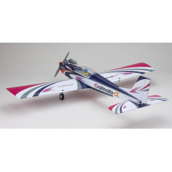 Enjoy the perfect introduction to low wing flight with optimal maneuverability for loops, rolls and other stunts with this new addition to the Kyosho Calmato α 40 Sports lineup. Calmato series DNA runs thick in this model to deliver unrivaled stability. Film covering is upgraded from PVC to superior quality reverse-side printed Toughlon which delivers both improved durability and lighter weight. Urethane clear coating can also be applied to prevent wrinkling over long time periods and unlike PVC films, dry-type cover film can also be applied for damage repairs. The fuselage features the Calmato’s unique EP/GP convertible design that requires no gluing to dramatically reduce assembly time. New coloring pattern allows coloring on upper and lower surfaces to be changed to improve visibility when flying. The exquisite finish replicates competition model standards and provides an ideal step up for beginners to the sporty performance of low wing flight.