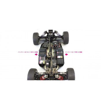 It is getting popular to use the shorty LiPo batteries to 1/8 EP Buggy due to the improved performance. The battery can be changed the installing position in the battery holder to adjust a center of gravity and balance as well as making weight reduction. That are advantage to use with the shorty LiPo battery. When use the shorty battery to MP10e, it has same effect for car. It can also be used with vintage Scorpion, Beetle and Fazer series.