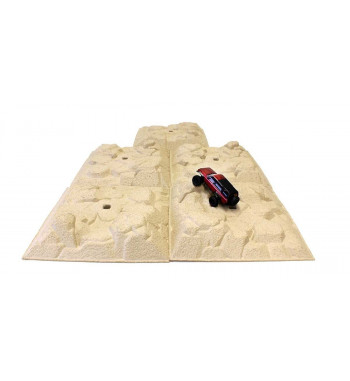 Rocky terrain for the MINI-Z 4x4. A set of 5 pieces of 480 x 480 x 103mm terrain. Making a square with four pieces and putting the 5th one on the center of the square will make a 960 x 960 x 156mm terrain, and you can enjoy wide variety of terrain by rotating each piece. Even larger terrain can be made using multiple sets.