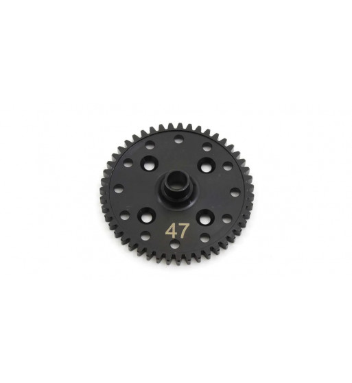 Optional parts for INFERNO MP10 series and MP9 series. Light weight 47T spur gear for use with smaller diff for the center(Same as front and rear diff). By using the smaller diff, acceleration will be quicker and smoother. Smoother deceleration can also be achieved. This spur gear is design to fit the smaller diff case replacing the stock diff housing which is larger. Requires to use with IF403B Diff case set.