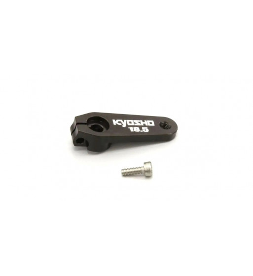 Optional Parts for the MP10/MP9 series. High precision Alumimum Steering Horn for Futaba servos. It is 2mm shorter than existing aluminum steering servo horns, and the initial reaction of corner tends to be mild and easy to drive.