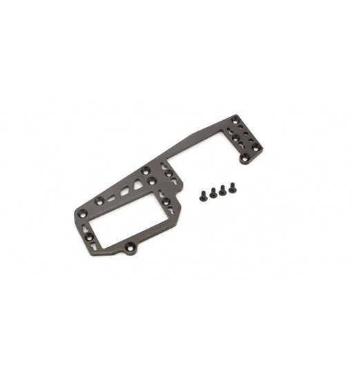 At first glance the radio plate looks similar to the MP9 TKI4, but the MP10 design features a revised servo position and increased strength with 3.0mm thickness, increased from 2.5mm.