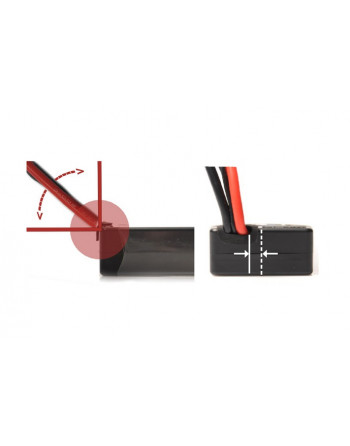 This LiPo battery in a rectangular hard case is 139 mm long (W: 47.0 mm, H: 25.0 mm) and has an angled, off-centre cable outlet protected by a rubber grommet to prevent the cables from colliding with the battery holder and allow them to be easily routed out of the battery compartment at an angle of 0° - 90°.