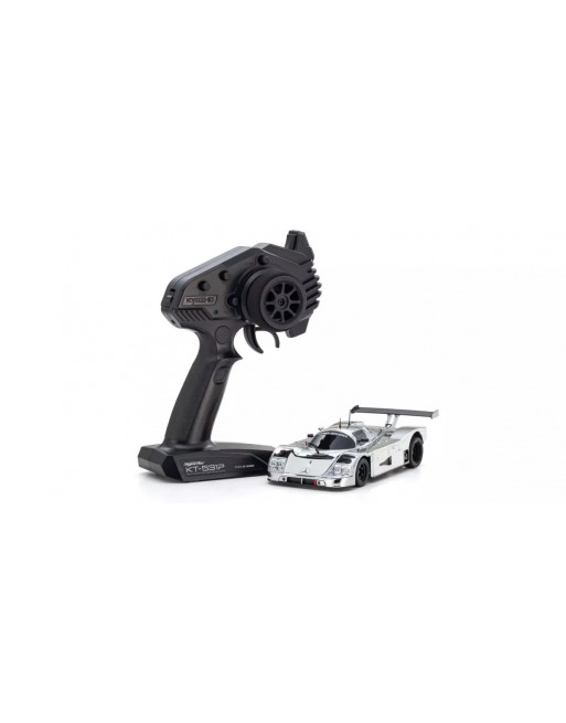Includes Syncro KT-531P transmitter with a steering wheel that mimics the steering wheel of a real car and pistol-grip throttle (speed control). Adjust the neutral position of steering and throttle with trims, as well as steering angle with dual rate adjustment. It is also possible to operate in training mode with a reduced vehicle speed (training mode is the default setting).