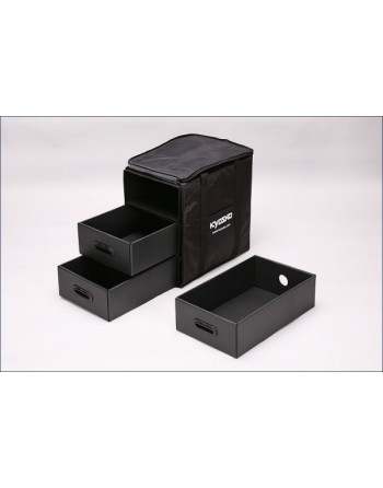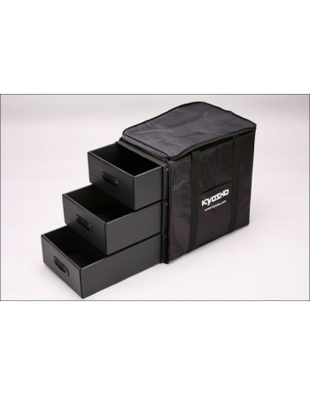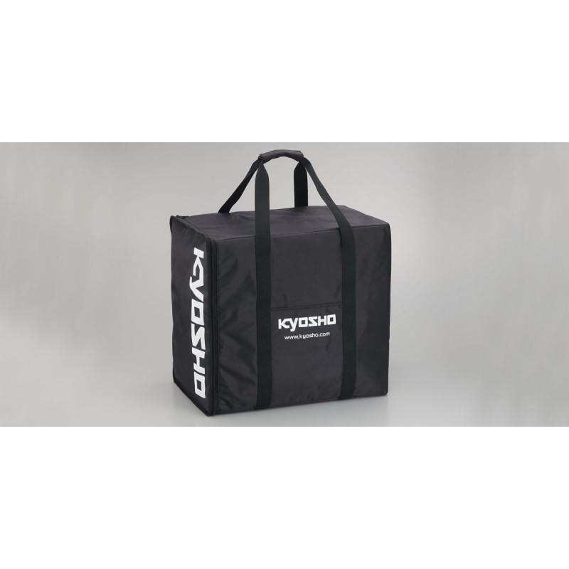 ●Carrying Bag for 1/10 ●Considerable materials for heavy duty use. ●Chic black color. ●Plastic cardboard for shelves. ●Outside pocket equipped. ●Equipped with multipurpose slit and travel carrier.