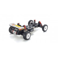 A monocoque frame made from tempered A6061T6 pressed clear anodized aluminum alloy used for aircraft manufacture combines with a glass reinforced resin upper deck to deliver light weight and durability for hard driving. The battery stay is compatible with all battery types and uses a hook & loop fastener (includes battery strap printed with KYOSHO logo) for easy battery mounting.